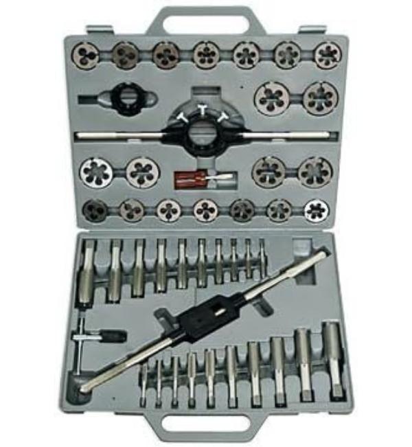 طقم دكر ولقمة من ٦-٢٤: مجموعة قوالب لولبة (طقم دكر) ومجموعة لقم مفاتيح، بمقاسات من 6 إلى 24 (غير واضح الوحدة).