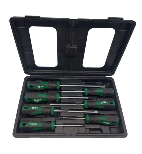 طقم مفك عادة وصليبة ٧ق FIT: مجموعة مكونة من 7 مفكات (برأس مسطح وبرأس صليبة) من علامة FIT.