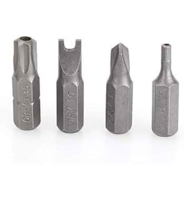 0.5–1" Spanish star bit set case: A case containing a set of star (Torx) bits ranging from 0.5 to 1 inch, of Spanish origin.