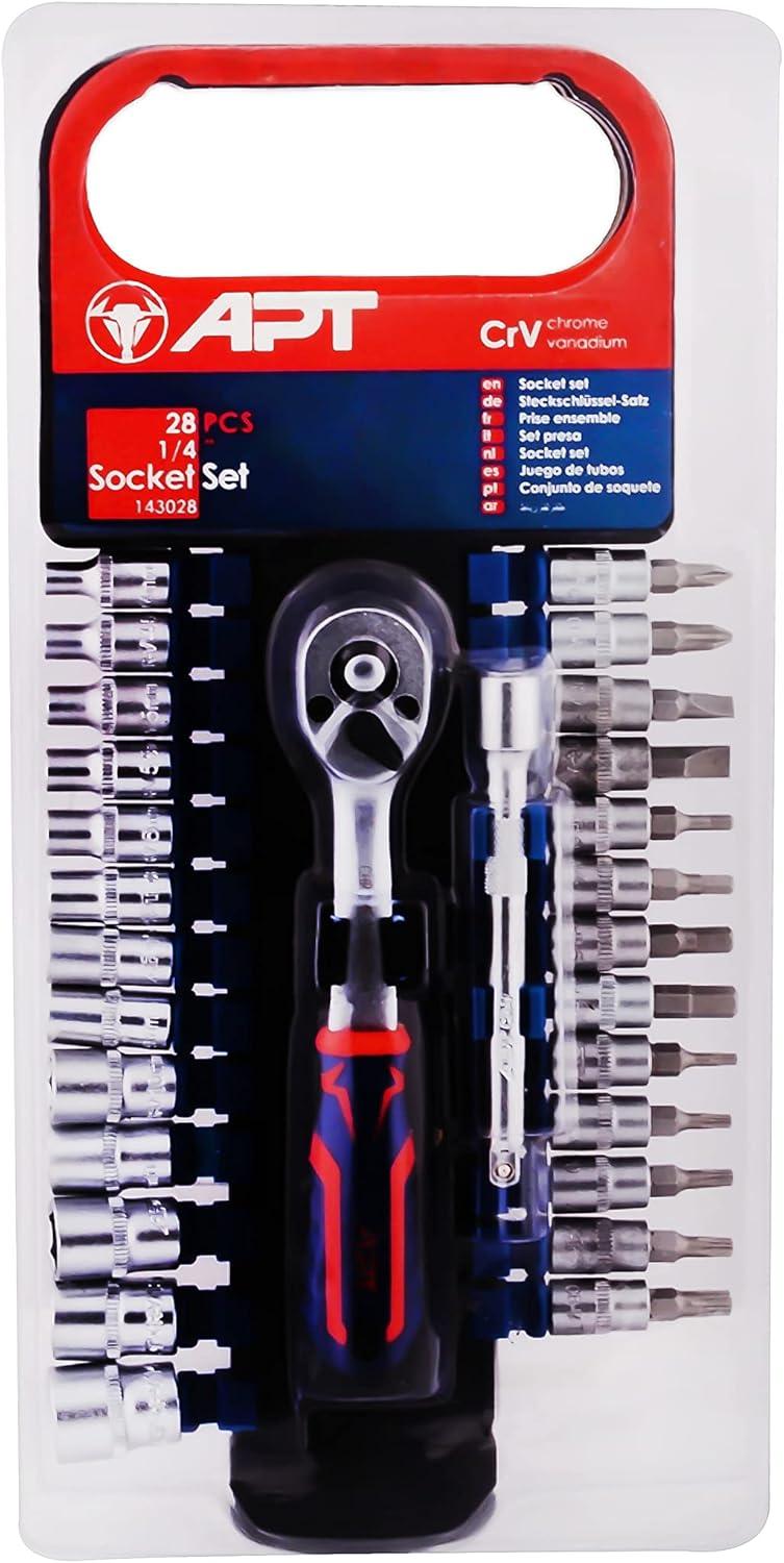1/4" bit set on card 143028 APT: A set of screwdriver or socket bits with a 1/4 inch drive size, mounted on a card, model 143028 from APT.