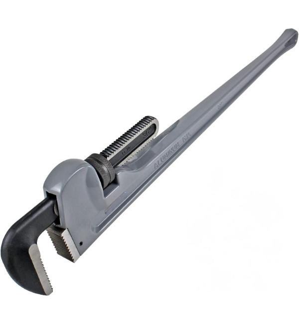 18" aluminum stainless wrench: An 18-inch adjustable wrench made of aluminum and stainless steel.