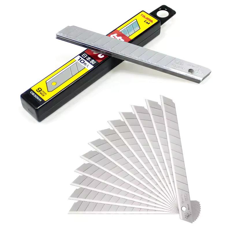 Japanese cutter blade in small case: A sharp blade for a cutting tool, of Japanese origin, stored in a small case.