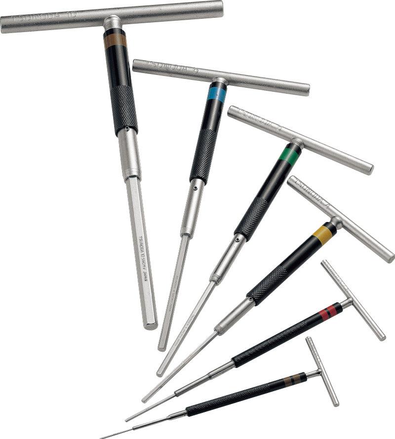 Serrated T-handle wrench set (Taiwanese system): A set of T-handle wrenches with serrated jaws for better grip, manufactured to a Taiwanese standard or system (likely hex or Torx keys).