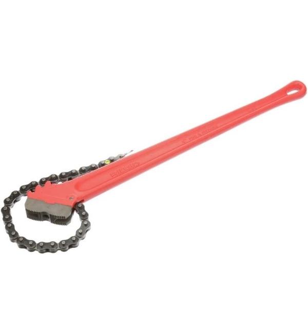 Spanish 10-inch chain wrench: A wrench of Spanish origin that uses a chain to grip and turn pipes or irregular shapes, 10 inches long.