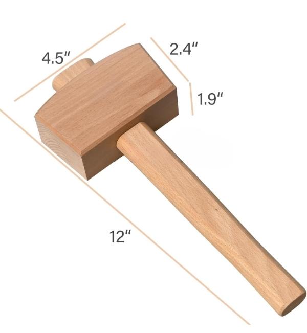Wooden mallet sizes: A selection of wooden mallets in various sizes.